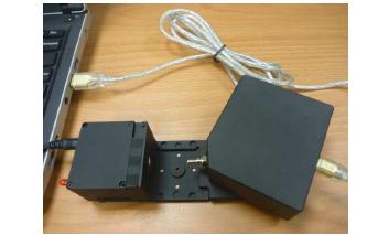 *光譜儀、USB、短光纖、鹵素燈、底座。