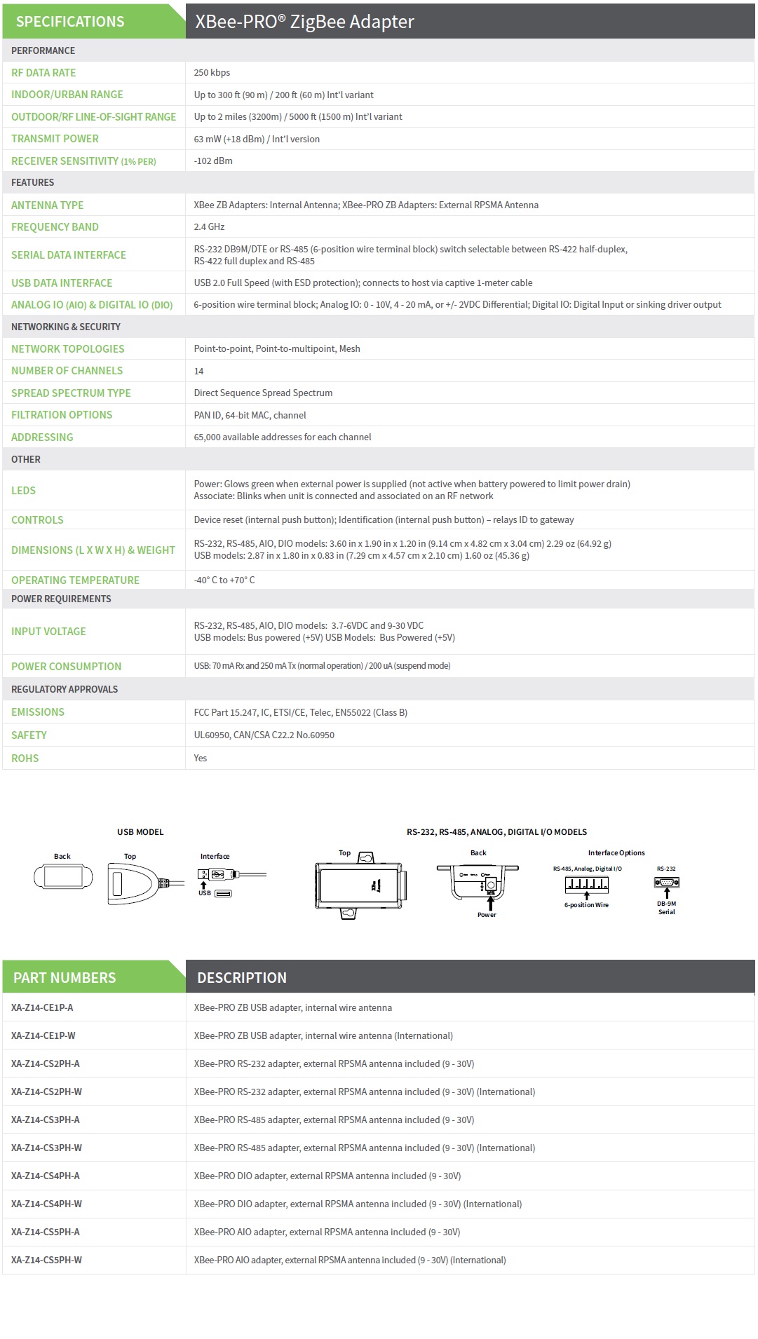 * Outdoor RF line-of-sight range up to 1 mile with XBee-PRO